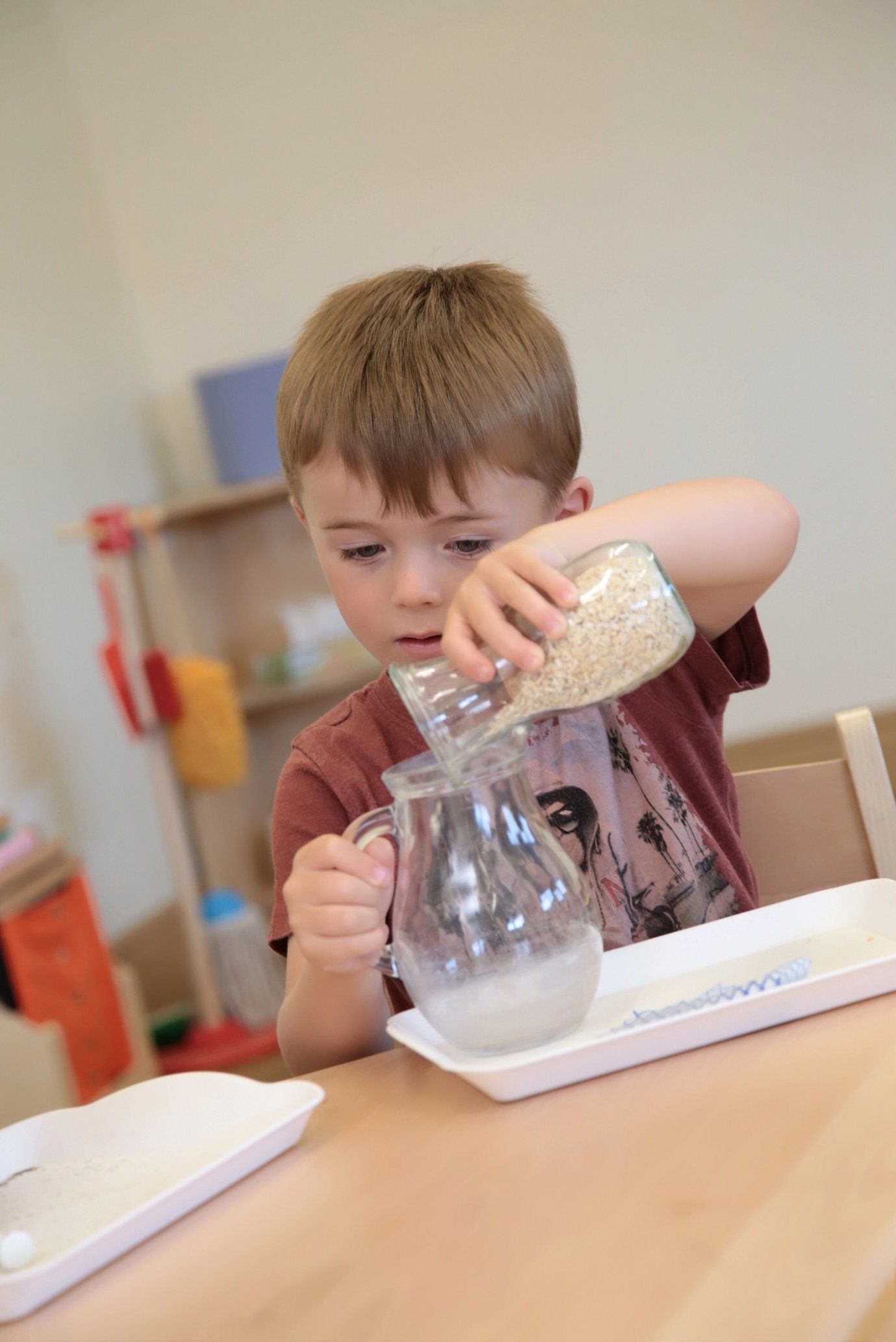 A lot of time and effort is involved in creating a prepared Montessori classroom that is designed to meet the individual needs of all children. Through developmentally appropriate, sensorial material that moves hierarchically from simple to complex and concrete to abstract, children are given the freedom to fully develop their unique potential through a carefully prepared learning environment.
